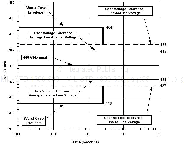 FIGURE 14. Type III, 440 Vrms, 400 Hz power - worst case and user voltage tolerance envelopes.