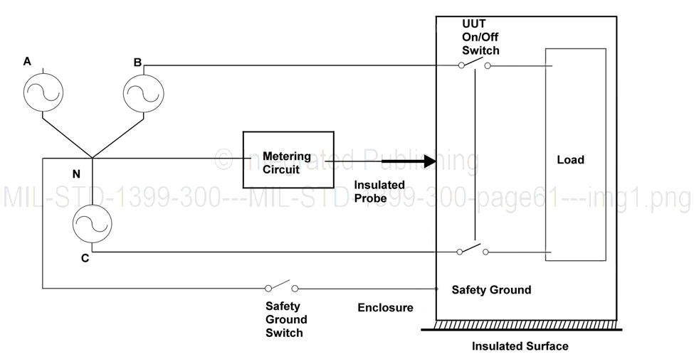FIGURE 29. Single-phase simulated human body leakage current test setup if user equipment is connected to a single-phase of a three-phase source.