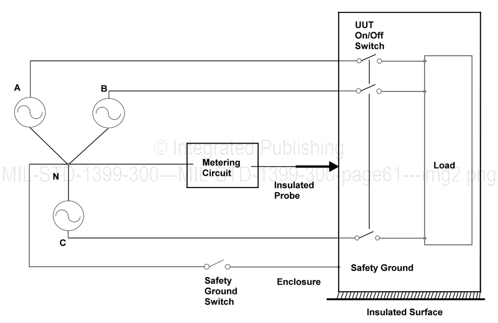 FIGURE 30. Three-phase simulated human body leakage current test setup for user equipment.